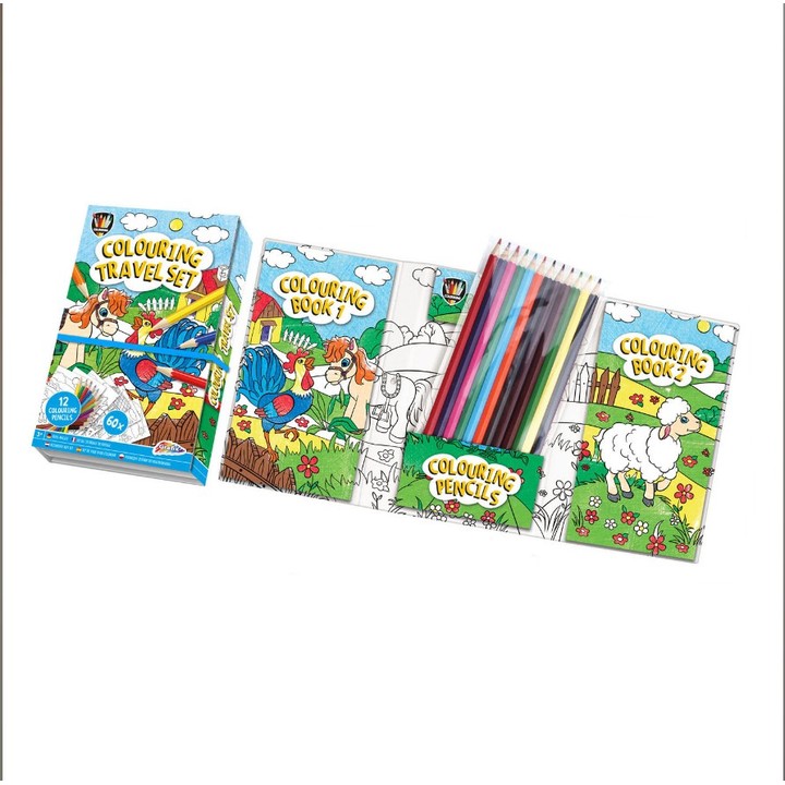 Dečji putni set za bojenje sa 2 knjige i 12 olovaka