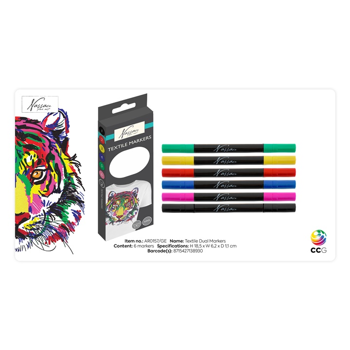 Introduction » Hobby boje » Boje za tekstil » Nassau dvostrani markeri za tkanine 6 kom