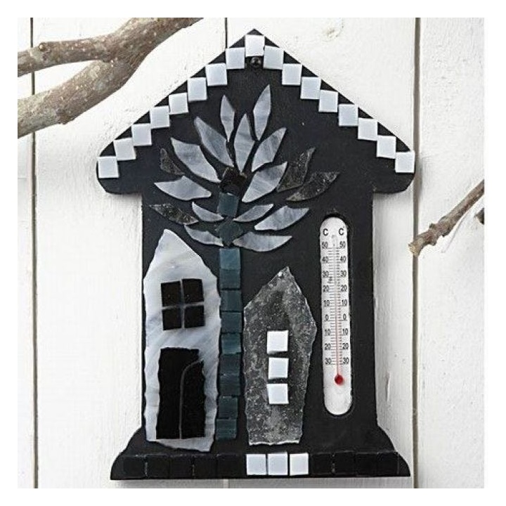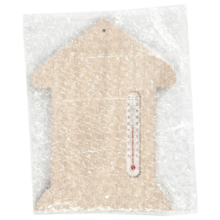 Drvena kuća sa termometrom je jednostavna dekoracija koja će pravilno ukrasiti vaš enterijer i eksterijer. Lagano drvo Paulownie pogodna je osnova za obradu raznim umetničkim tehnikama. Raspon termometra je od -30 ° C do 50 ° C. U drvetu postoji otvor za konac.