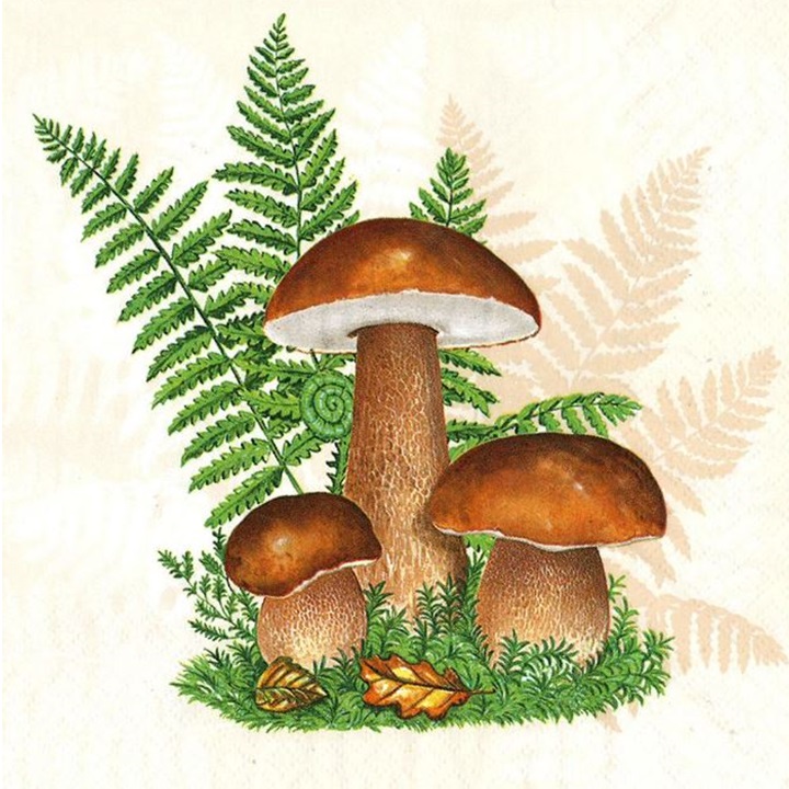 Introduction » Hobby » Decoupage - salvetna tehnika » Salvete i papir za DECOUPAGE » Salveta za dekupaž Boletus with Leaves of Fern - 1 kom