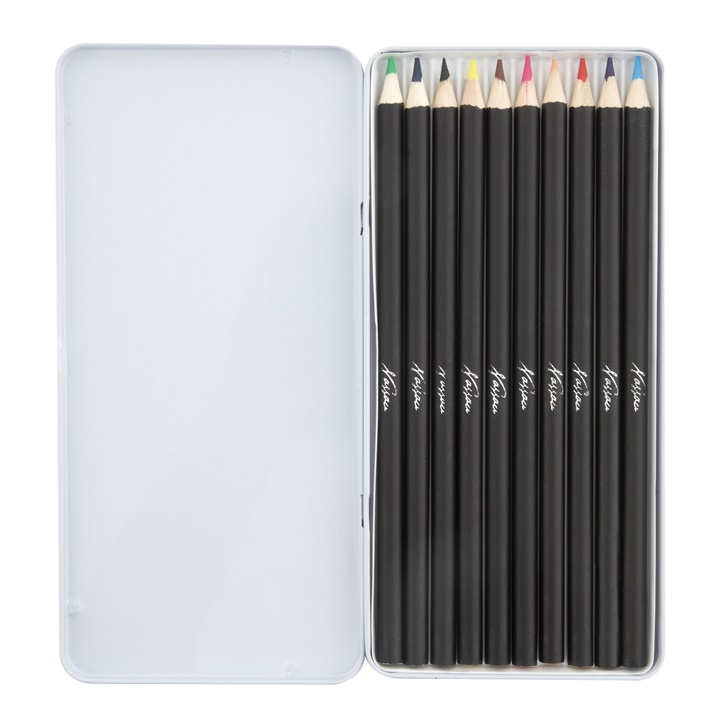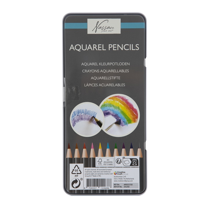 Predstavljamo vam set Nassau akvarel olovaka , dizajniranih za sve ljubitelje crtanja i umetnosti. Ovaj proizvod nudi 10 olovaka različitih boja u metalnoj kutiji koja garantuje bezbedno i praktično skladištenje. Olovke su idealne za kreiranje preciznih crteža sa mogućnošću da istaknete nijanse vodom, omogućavajući vam da klasični crtež pretvorite u akvarelnu sliku. Visokokvalitetni grafit i pigmenti čine olovke pogodnim za profesionalnu upotrebu, ali su i odličan alat za početnike koji žele da se poigraju različitim tehnikama. Nassau akvarel olovke su savršen saputnik za umetnike, učenike umetničkih škola ili one koji traže kvalitetne olovke za bojenje za svoje slobodne aktivnosti. Zahvaljujući svojoj svestranosti i visokom standardu izrade, pogodni su za sve uzraste.